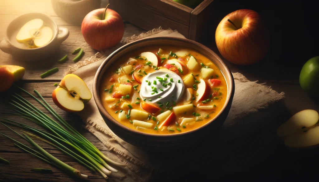 Die ungarische Apfelsuppe ist eine faszinierende Fusion aus süßen und herzhaften Aromen, die in der DDR-Küche ihren besonderen Platz gefunden hat. Dieses Rezept vereint saftige Äpfel mit Paprika, Gurken und Zwiebeln, um eine Suppe zu kreieren, die sowohl erfrischend als auch würzig ist. Besonders die Zugabe von saurer Sahne sorgt für eine samtige Konsistenz und eine leichte Säure, die das gesamte Geschmacksprofil wunderbar ausbalanciert. Der edelsüße Paprika verleiht der Suppe eine warme Würze, während der frische Schnittlauch als Garnitur nicht nur optisch überzeugt, sondern auch zusätzliche Frische bringt. Diese Apfelsuppe ist eine perfekte Wahl für alle, die eine neue Geschmackserfahrung suchen und ihre Liebsten mit einem besonderen Gericht überraschen möchten.