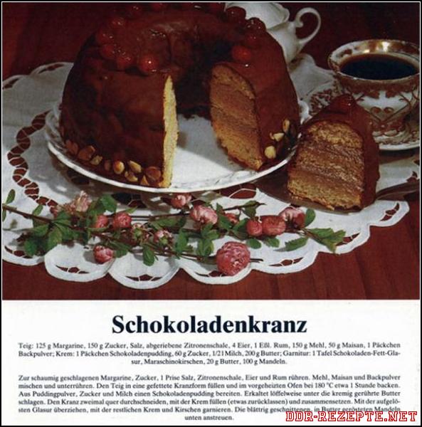 30 Forum Willkommen in unserem Forum! MenüForum-NavigationForumAktivitätAnmeldenForum-Breadcrumbs - Du bist hier:ForumKochen & Backen: Eure RezepteKuchen/Torten/GebäckSchokoladenkranzBitte Anmelden, um Beiträge und Themen zu erstellen.Schokoladenkranz DDR Rezepte@admin354 Beiträge#1 · 28.04.2019, 12:22Zitat von DDR Rezepte am 28.04.2019, 12:22 UhrSchokoladenkranz Schokoladenkranz Hochgeladene Dateien: Antwort: Schokoladenkranz AbbrechenRSS-Feed