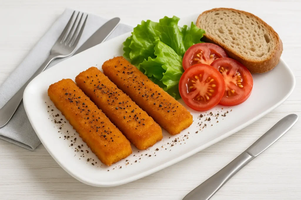 - Die Fischstäbchen in heißem Öl auf beiden Seiten goldgelb braten.