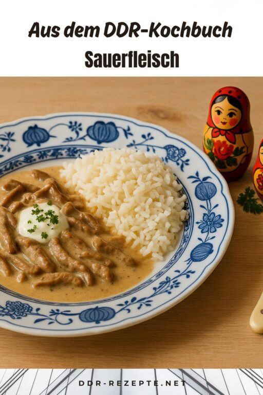 Dieses Rezept stammt aus einem ungarischen Kochbuch, das in der DDR viele Fans hatte: „Ungarische Kochkunst“ von Jozsef Venesz. Das Sauerfleisch nach ungarischer Art ist kein Sülzgericht, wie man es hierzulande kennt, sondern ein gedünstetes Rindfleischgericht mit säuerlicher Sahnesoße, das mit Reis serviert wird. Einfach, deftig und voller Geschmack.